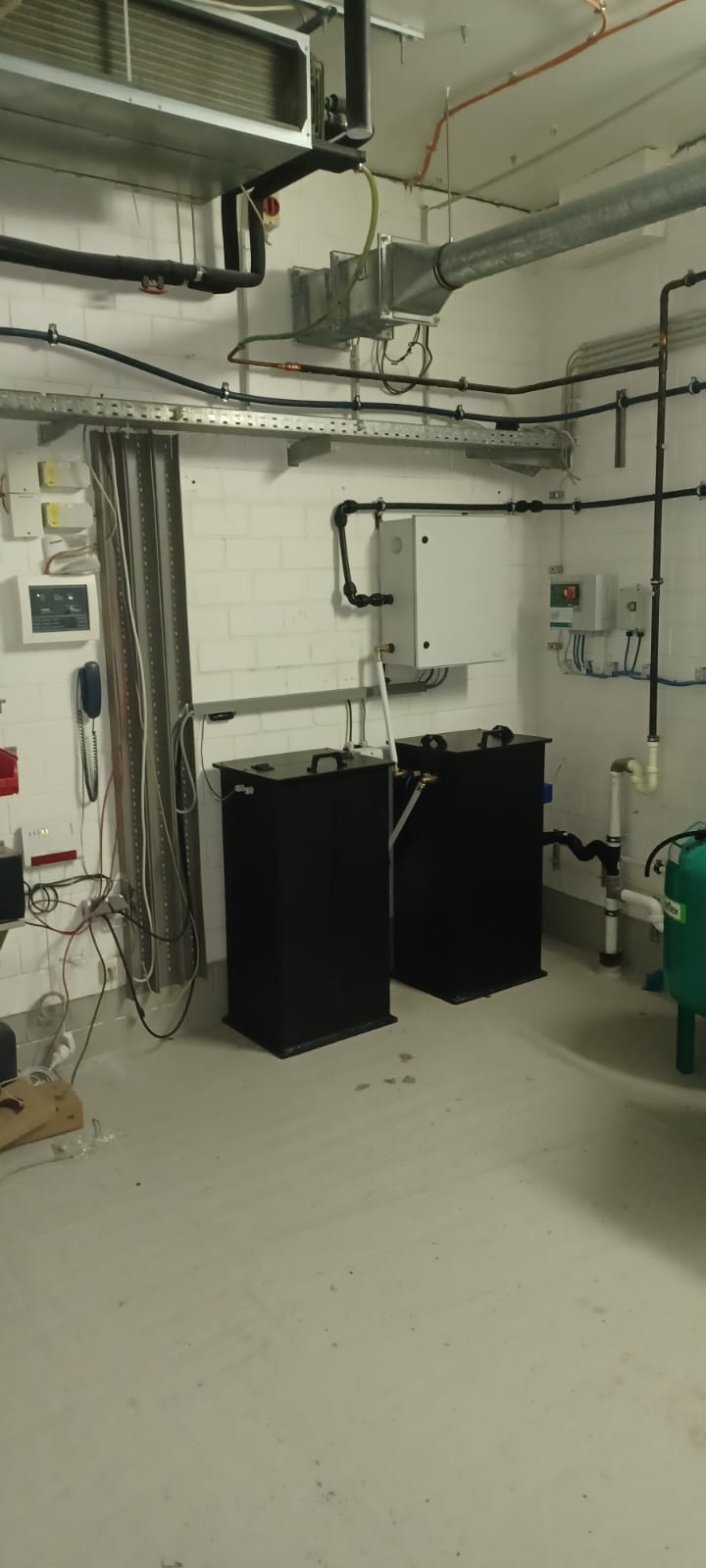 In de techniekruimte werd een installatie geplaatst bestaande uit een break-tank, meststofvoorraad en een stuurkast met meststofinjectie. Vanuit deze installatie wordt het irrigatiesysteem aangestuurd en voorzien van water en voedingsstoffen.