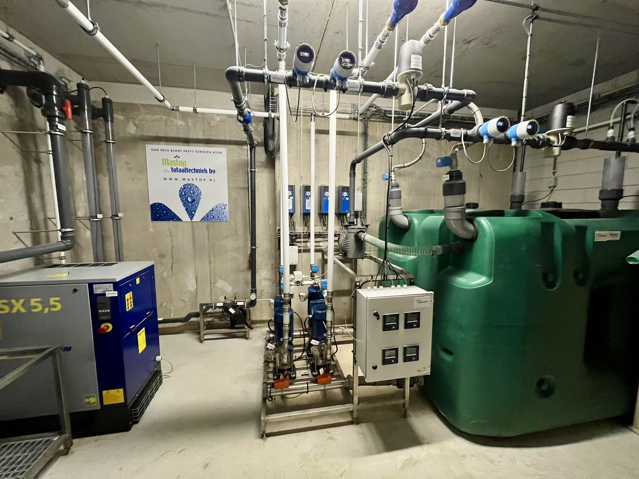 Om de waterkwaliteit te bewaken is de installatie uitgerust met EC- en pH-sensoren. Daarnaast wordt opgevangen regenwater gebruikt voor de irrigatie van de beplanting.